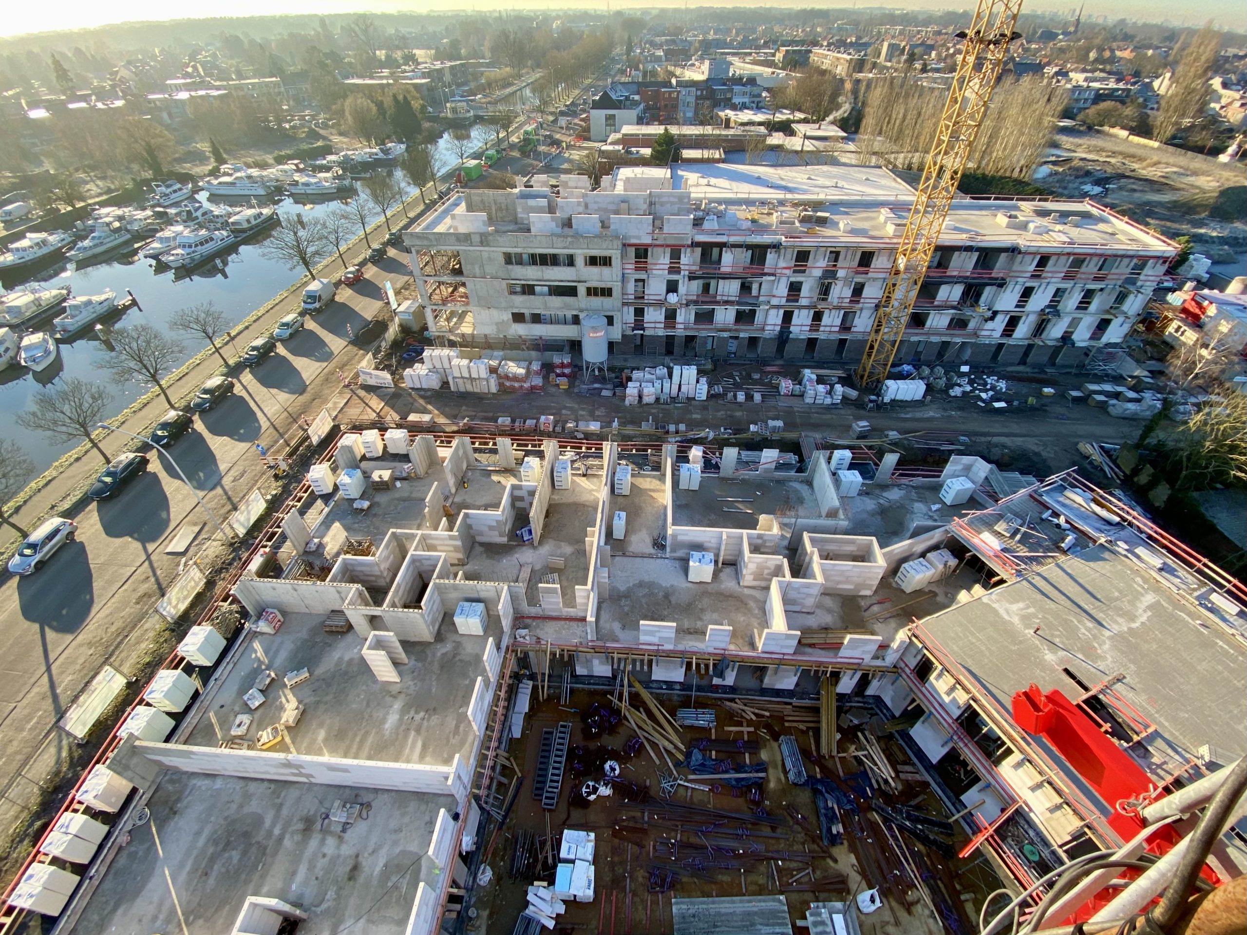 Zelfs in de laatste week voor kerstmis denkt het bouwteam na over de planning van de werken ná de kerstvakantie. Hierbij zal de focus is in het eerste helft van volgend jaar voornamelijk nog liggen op de ruwbouw. Hierbij zal in het gebouw van Vaart 2 in januari de ruwbouw worden afgerond, waar je ook de gevelsteen zienderogen zal zien stijgen. Terwijl men bij het gebouw van Vaart 1 tegen Pasen op volledige hoogte zal staan, deze wordt afgedekt tegen mei. Volgende zomer zal het finale volume van de gebouwen dus voelbaar zijn langs de Vaart. Alvast een mijlpaal om naar uit te kijken!